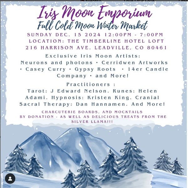 Iris Moon Emporium is hosting the Full Cold Moon Winter Market on the 15th! Come shop local colorado artists just in time for the holidays a...